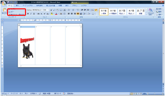 栞1枚の設定ができたら、他のセルにコピーします。コピー元のセルを選択し[コピー]ボタンをクリックします。