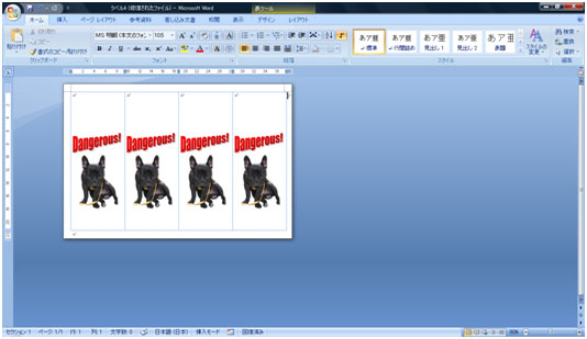 4列×1行のラベルができました。