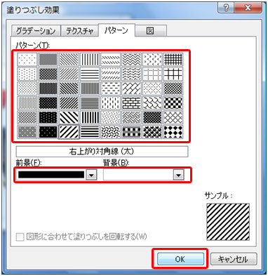 好みのパターンと色を選択し[OK]ボタンをクリックします。