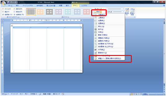 [罫線]ボタン→[線種とページ罫線と網掛けの設定]をクリックします。