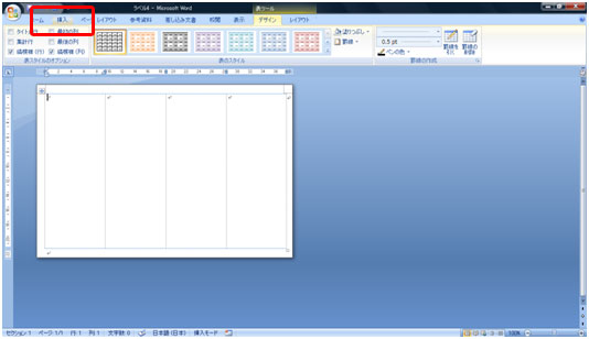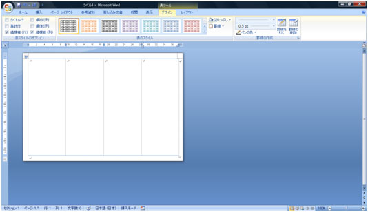 切り取り線が目立たないように縦の罫線に線の色を灰色、点線にします。表全体を選択している状態で[デザイン]タブをクリックします。