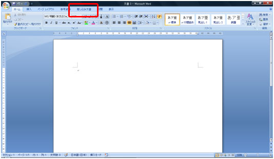 ワードを起動し[差し込み文書]タブをクリックします。