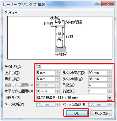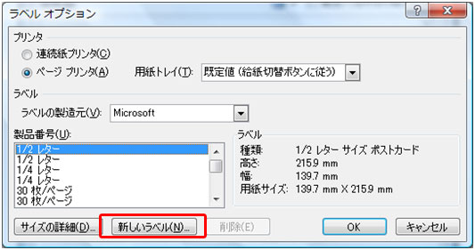 用紙サイズとラベルの設定