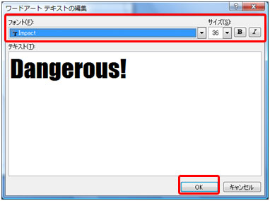 [ワードアートテキストの編集]ダイアログボックスが表示されるので、文字を入力します。
