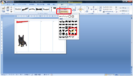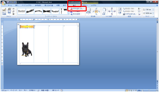 ワードアートの形状が変わりました。