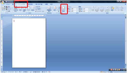 ページの周囲に罫線を設定します。 [ページレイアウト]タブ→[ページ罫線]ボタンをクリックします。