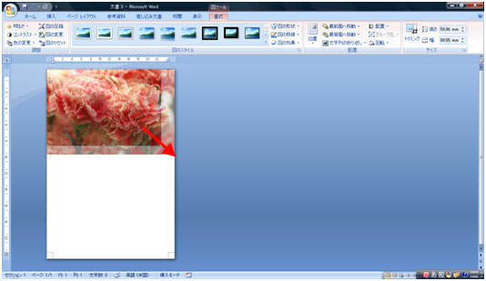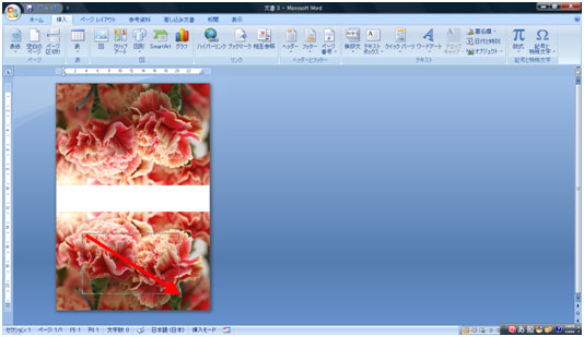 写真を用紙の横幅に合わせて大きくします。写真右下のハンドルでドラッグします。