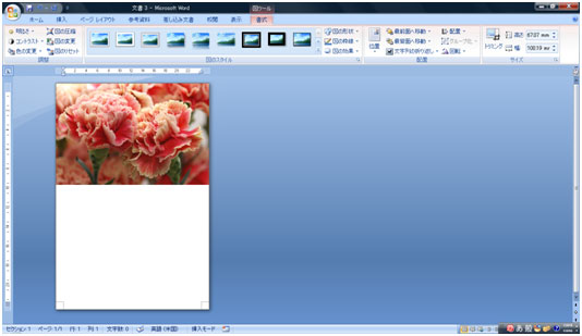 写真を挿入します。[挿入]タブ→[図]ボタンをクリックします。