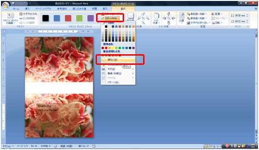 誕生日、母の日、父の日、手作りカードをプレゼントに添えてはいかが♪ ワードで2つ折りのカード(はがきサイズ)を作ります。
